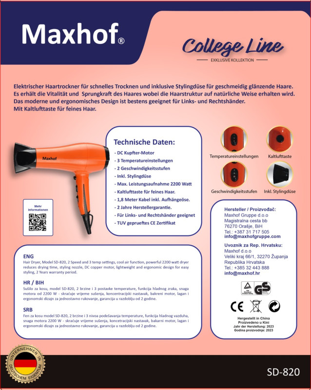 - Aktivirajte cool shot funkciju za brzo postavljanje frizure, dok zaštita od pregrijavanja osigurava sigurnost vaše kose.