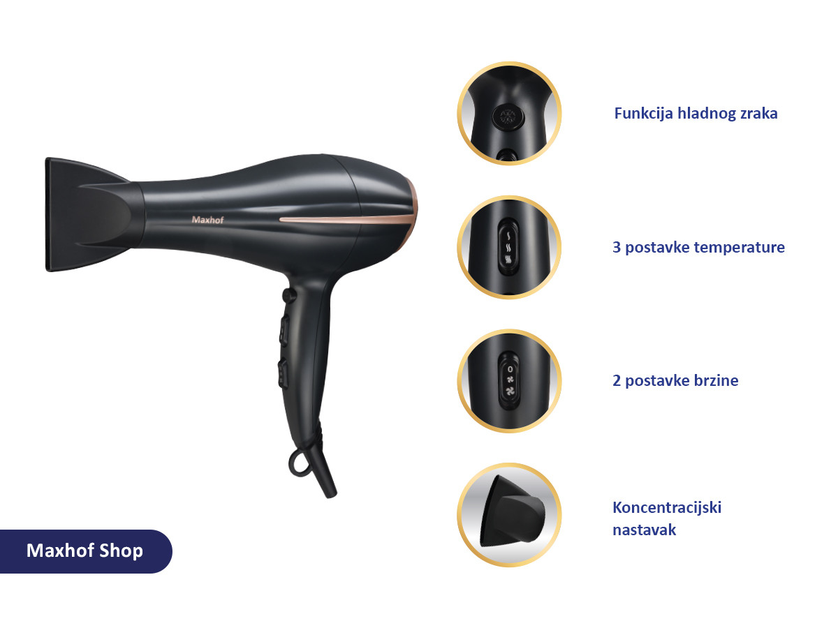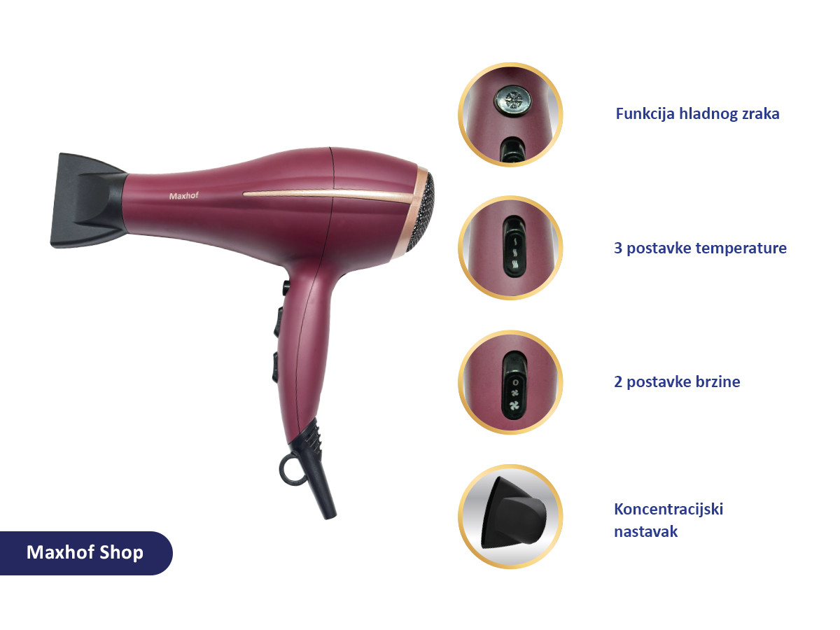 - Snažnih 2200W snage, sa 2 brzine i 3 temperature, omogućuje vam savršeno oblikovanje svaki put.