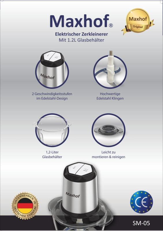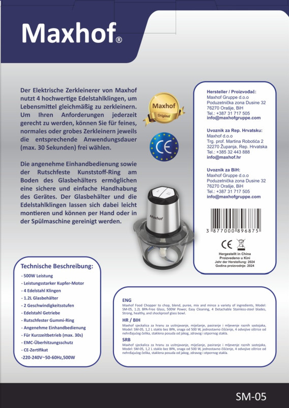 š¢Ā Maxhof sjeckalica s 1.2L staklenom posudom i 4 oÅ”trice od nehrÄajuÄeg Äelika omoguÄuje brzo i sigurno sjeckanje, miksanje i pripremu raznih jela u samo 25 sekundi ā idealna za sve, od mesa do djeÄje hrane!