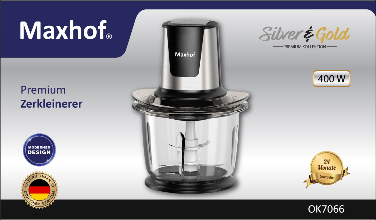 📢 Maxhof Premium sjeckalica s moćnim motorom, 4 ultraoštre oštrice i staklenom posudom omogućuje profesionalno sjeckanje, miksanje i pasiranje u svega 25 sekundi – brzo, sigurno i precizno za savršene obroke svaki dan!